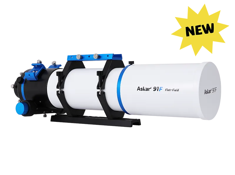 The Askar 91F is an OTA with an aperture of 91mm, a focal length of 609mm, and a native focal ratio of F6.7.