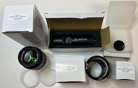 This is an Apertura AD10 that is in excellent condition, with only a small amount of dust on the primary mirror that will not affect your views. The rest of the scope works perfectly, with smooth, buttery movement. It includes all of the standard accessories that come with new Apertura scopes, as detailed below, which are also in excellent, clean condition, and the collimator works. It also includes an Apertura padded case for the OTA, a $100 value.