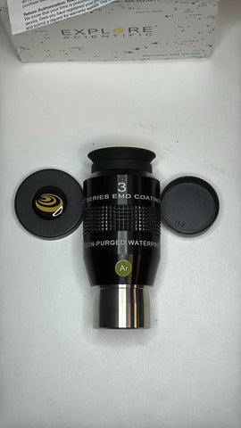 This is an Explore Scientific 52-degree 3mm eyepiece in excellent condition.  The optics and body are clean.  Comes in its original box, with velvet bag, both dust caps, and warranty card.