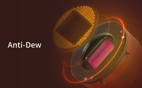 The ASI4400MC Pro features a built-in polyimide heater bonded to the protective window to prevent dew and frost buildup, ensuring clear and reliable imaging throughout the night.