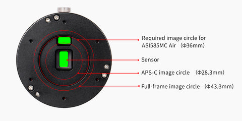 Please refer to the diagram below to understand how ASI585MC/MM Air cameras match with various telescope image circles.