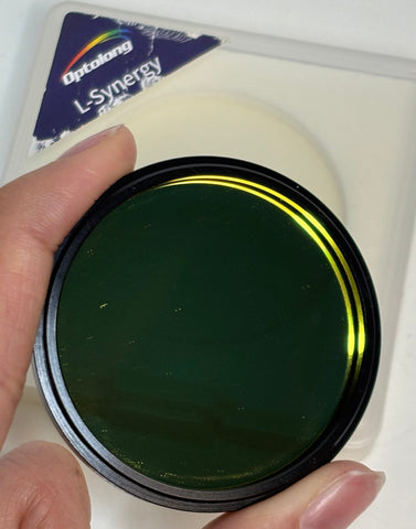 This is a used 2" Optolong L2 Duo-Combo Set that includes a L-eXtreme and L-Synergy filter both in fair condition. It comes in its original jewel box which has some ware. There is a scratch on the L-eXtreme optics and issues within the coatings of the L-Synergy optics which can be seen in the images provided. (Any dust you see in the photos is easily removable - it seems that these filters develop an electrostatic charge such that the dust in the air is just attracted to the filter.)