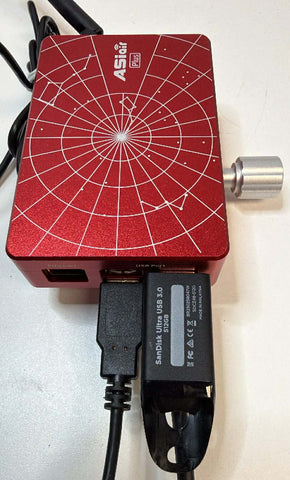 This is a used ZWO ASIAIR Plus in excellent condition. This includes the original box, the two attached USB cables, as well as everything shown in the photos. The previous owner upgraded this by adding the ZWO DOVE AIR dovetail clamp (a $39 value) and a Sandisk Ultra 512GB thumb drive (a $35 value).