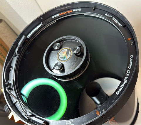 This is a used C9.25 OTA with a CGE dovetail in very good condition. The optics are clean, and the body is unmarked (See the photos.) This OTA has the newer Starbright XLT coatings and Fastar. It also includes the Celestron dew heater ring (an $80 value) and a Pegasus Astro dew heater controller (a $100 value).