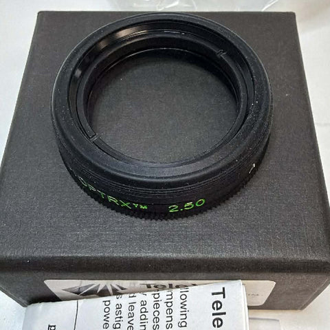 This is a used Tele Vue Dioptrx 2.5 astigmatism correcting lens. It is in excellent condition with clean optics.  This includes the original instruction sheet, one dust cap, and comes in the original box.