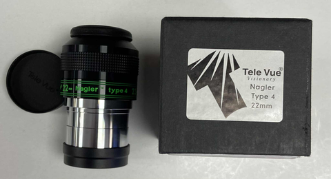 This is a used TeleVue 22mm Type 4 Nagler in excellent condition. The optics and body are both clean. This has both dust caps as well as the original box.