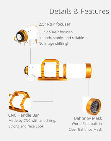 - Focuser: 2.5" Rack & Pinion Dual Speed Focuser