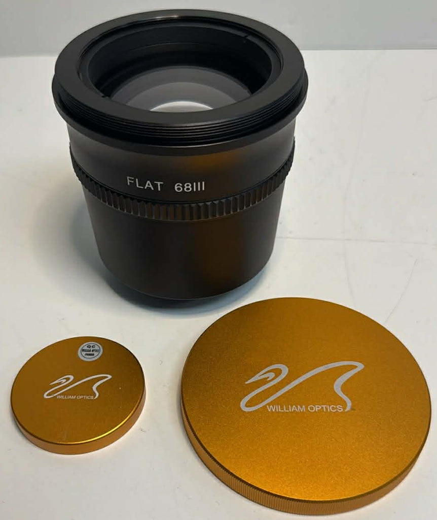 This is a WO 1.0x flattener, the P-FLAT68III, in perfect, pristine, like-new condition, with completely clean optics and body. The previous owner only used it a handful of times and just didn't use it enough to justify keeping it around. The optics are of course sparkling clean and everything is in great shape. It does not have its original box.