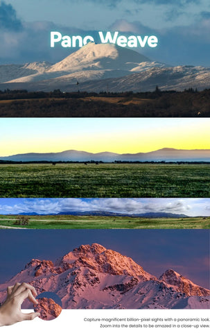 Pano Weave uses cloud-based stitching to merge a series of tele shots into one ultra-detailed panoramic image - no local processing needed, just capture and upload.