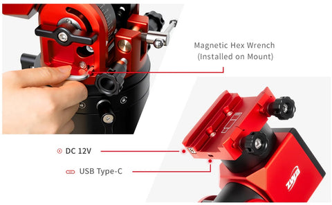 The upgraded AM3N weighs just 4.1 kg (9.04 lbs), with a newly optimized design for improved portability and cable management. The dovetail saddle now integrates Type-C and 12V DC ports to minimize clutter, while a magnetic hex key attaches directly to the mount for convenient storage.