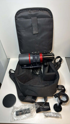 - Additional included accessories consist of a 10:1 factory-tuned rack & pinion focuser with a 2" Filter vault, a 360º rotator, a Radian padded-insert travel backpack, dew shield, dust covers, and more