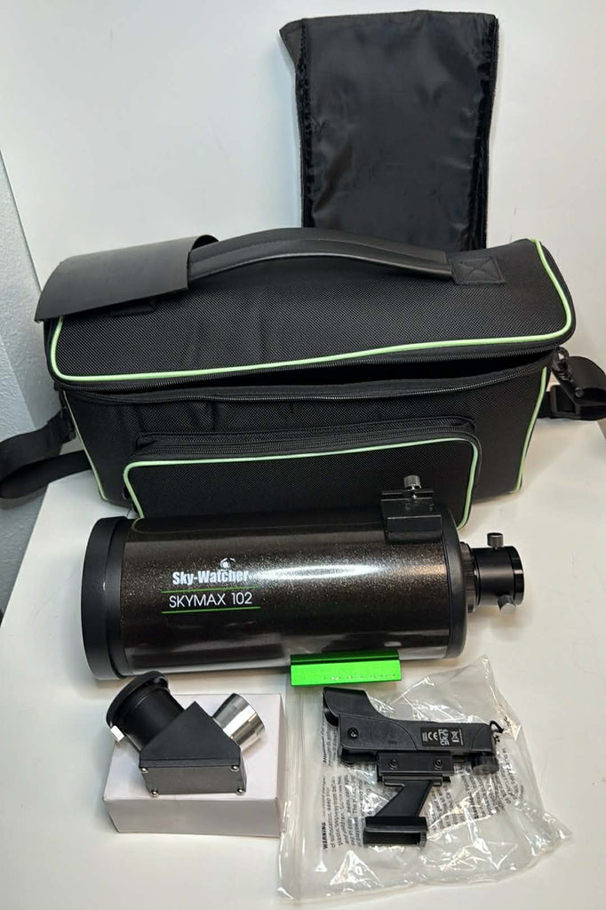 This is a used 102mm Mak in a padded nylon case. It is in excellent condition, with a clean meniscus and body. This is a nice savings off of the new OTA. Notably, it does not include any eyepieces. It includes the following: