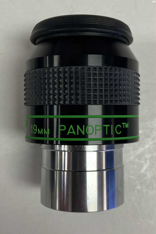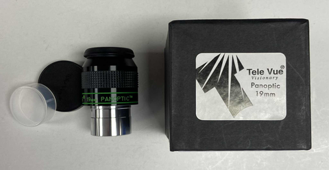 This is a used TeleVue 19mm panoptic eyepiece in excellent condition. The optics are clean and there are no marks on the outer body. This includes both dust caps as well as the original box.