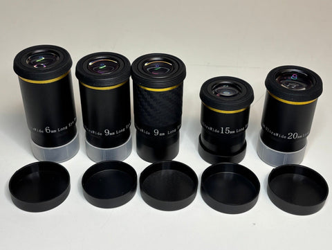 These are used Svbony gold-line eyepieces in excellent condition. The optics and bodies are clean. Any dust you see in the photos is easily removable.