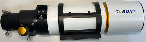 This is a SvBONY SV48P 90mm achormat in excellent condition, absolutely clean optics, and no marks on the body. This is the barebones OTA only - no eyepieces, no diagonal, no RDF. It includes the Vixen dovetail for attaching securely to your mount and the 2" to 1/.25" adapter.
